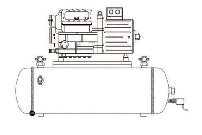 Horizontal Kältemittelsammler mit Bodenplatte für Kompressor