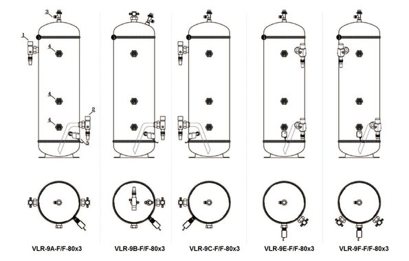Vertical Kältemittelsammler mit Flüssigkeitsabscheider